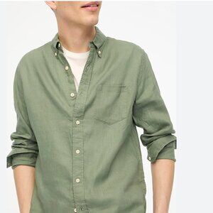 J. Crew Factory Linen Blend Long Sleeve Button Down Olive