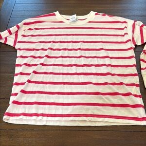 J. Crew Factory Long Sleeve Tee with Pink and White Stripes