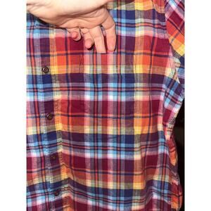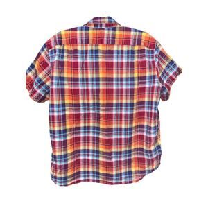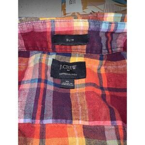 J Crew Factory Men’s Button Down Plaid Shirt Slim Fit XL Cotton Linen preppy