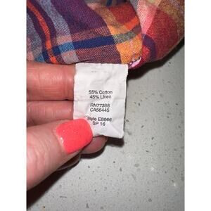 J Crew Factory Men’s Button Down Plaid Shirt Slim Fit XL Cotton Linen preppy