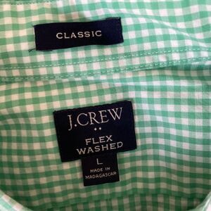 J. Crew Factory Men's Vibrant Green White Gingham Flex Casual Shirt Size Large Classic Fit