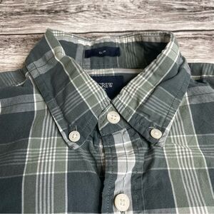 J. Crew Factory Men's Slim Fit Button Down Shirt Green Ivory XS Extra Small Long