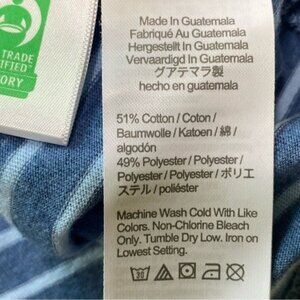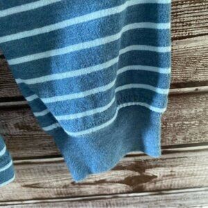 This Men's Long-Sleeved Pullover by J Crew is a Size L and is made of 51% Cotton and 49% Polyester. It has a two toned blue striped pattern with a hood Gently used. Great Condition!