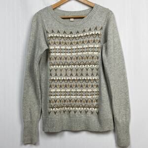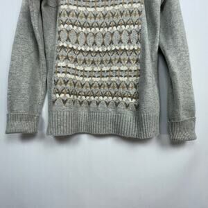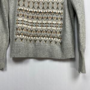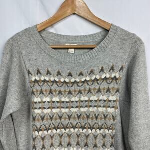 J. Crew Factory Merino Wool Blend Fair Isle Sweater Size S Gray Knit Style E3403