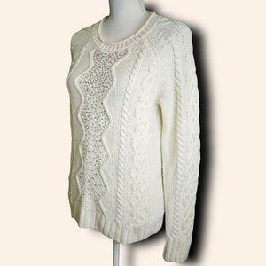 J. Crew Factory ‘Merino Wool Blend Silver Bead Embellished Cable Knit Sweater’ S