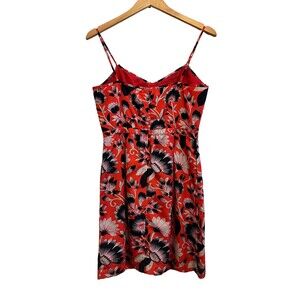 J. Crew Factory Mini Dress Red Blue Floral Sleeveless Pockets Babydoll Flowy 6 M