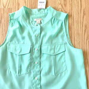 J Crew Factory Mint Green Sleeveless Shirt Blouse Size 00 Button Down Front