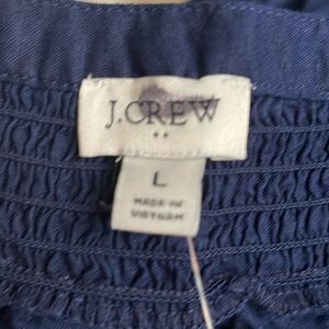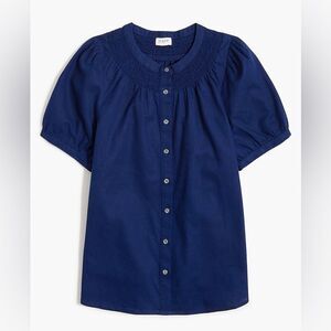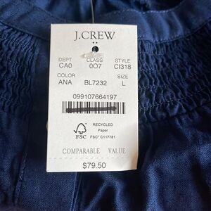J Crew Factory NWT Linen Blend Short Sleeve Smock Neck Top Size Large in Navy