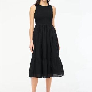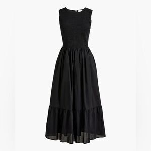 J Crew Factory NWT Smocked Midi Dress Size Petite Small in Black | 100% Cotton