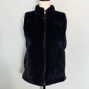 J. Crew Factory Navy Faux Fur Vest Size Small