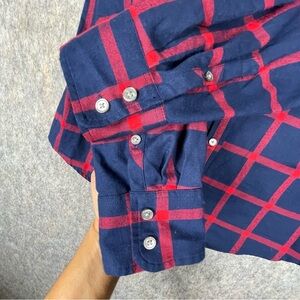 J. Crew Factory Navy Red Plaid Windowpane Flannel Casual Preppy Shirt - Sz M
