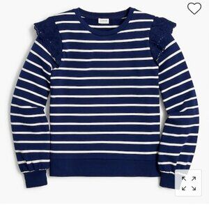 J. Crew Factory Navy and Antique White Striped Eyelet Ruffle Trim Sweatshirt NWT