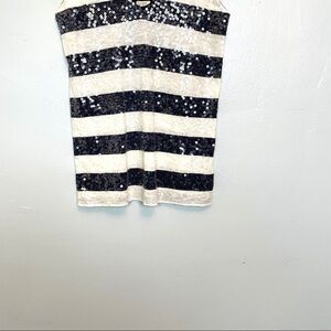 Fun J. Crew Factory navy and white sequined tank with V neck front and back. Can be dressed up or down. Fabric is 100% cotton (except the sequins); hand wash cold. Excellent pre-owned condition. Size XXS.