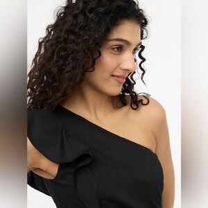 Brand new Women’s J. Crew Factory One-shoulder midi dress in black in Size 10. Crisp cotton dress that fits true to size and can be dressed up or down.