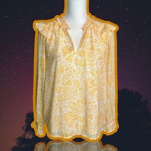 J. Crew Factory Orange Paisley Botanical ‘Ruffle-Collar Top’ Size XS