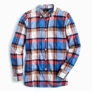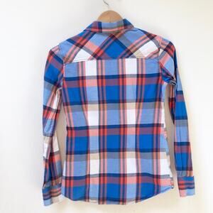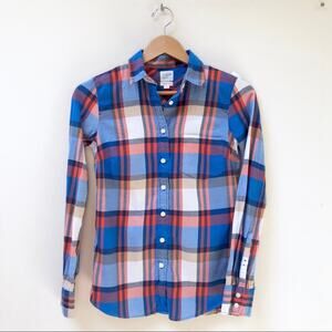 J. Crew Factory Perfect Fit Long Sleeve Plaid Button-down Shirt Blue Orange Women’s XXS