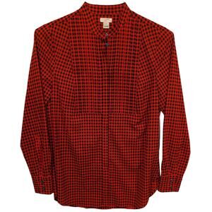 J. Crew Factory Plaid Check Long Sleeve Front Placket Top Size XS Red Black