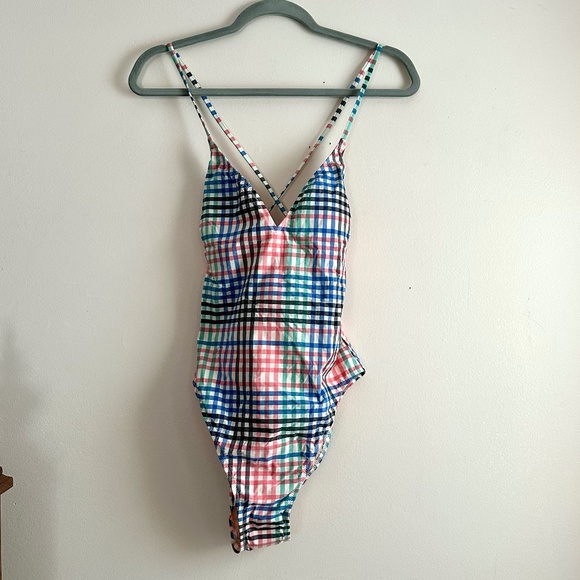 J. Crew Factory • Plaid Lace-up One-Piece Swimsuit