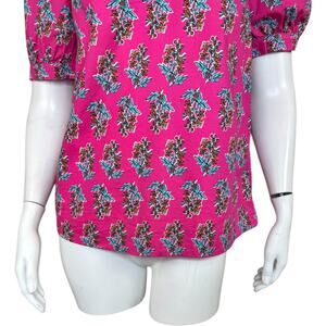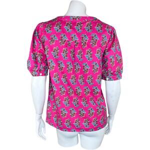 J. Crew Factory Printed Short Sleeve V-Neck Poplin Top Size XS Pink Floral