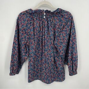 J. Crew Factory Printed Smock Neck Top Blouse Size S BY332 blue red green