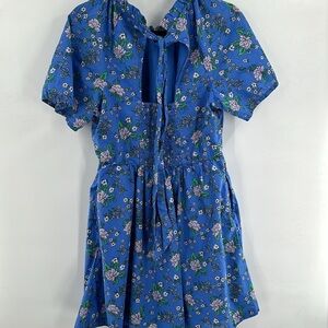 J Crew Factory Puff Sleeve Tie Back Mini Dress Blue Floral 6