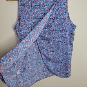 J. Crew Factory | Red & Blue Tile Print Split Back Tank Top.