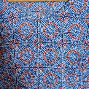 Sleeveless tank top with a red & blue tile print that reminds me of stained glass. Crossover split back adds a fun twist!