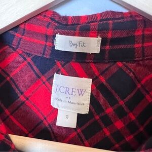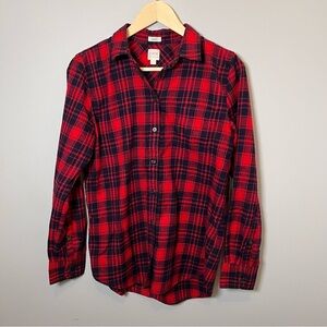 J. Crew Factory Red/Navy Plaid Boy Fit Button Up Shirt Size Small