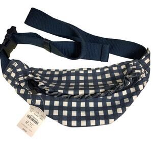 J. Crew Factory Ruffle Belt Bag One Size Adjustable Navy Ivory Gingham Check NEW