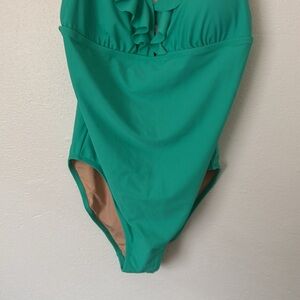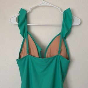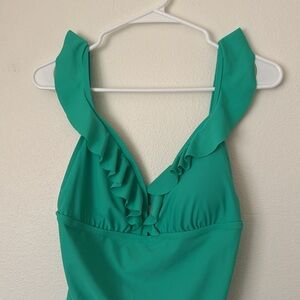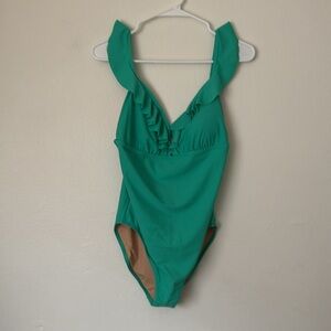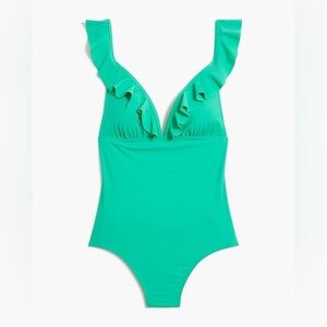 J. Crew Factory Ruffle-shoulder V-neck one-piece swimsuit