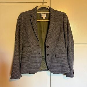 J. Crew Factory School Boy Houndstooth Blazer Wool Blend Size 2 Preppy