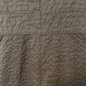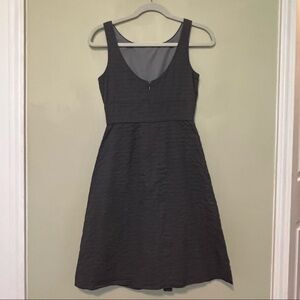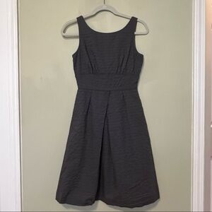 J. Crew Factory Sleeveless A-line dress in a dark gray color with a puckered texture material. Round neck in the front with a lower back. Zipper located in back. Dress fully lined and has side pockets.