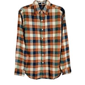 J Crew Factory Shirt Mens Small Flannel Brown Buffalo Check Cotton AZ835