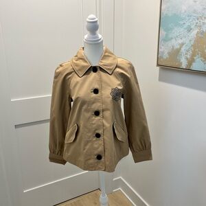 J Crew Factory Short Utility Trench Jacket in British Khaki embroidered size XS