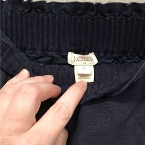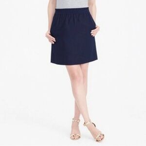 J. Crew Factory Sidewalk Skirt Mini Navy Linen/Cotton Elastic Waist Pockets Sz 2