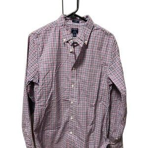 J. crew men’s slim fit dress shirt. Flex washed. Size medium. Pink, purple and black plaid.