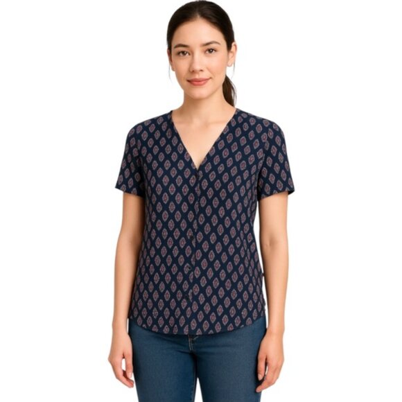 J. Crew Factory Small Short Sleeve V Neck Navy Paisley Print Blouse