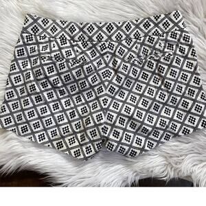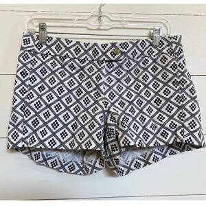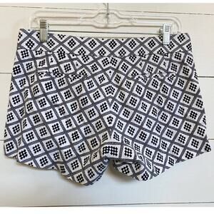 J. Crew geometric print shorts. Chino shorts. Front tab button closure with zipper. Front hidden pockets. Back slit welt pockets.