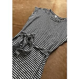 J. Crew Factory Striped Black White Waist Tie T-shirt Dress