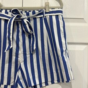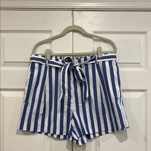 J. Crew Factory Striped Cotton-blend Poplin Tie-waist Shorts Blue White Size 16