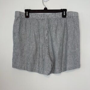 Linen-blend drawstring shorts with black and white stripes. Size Large