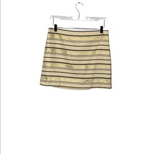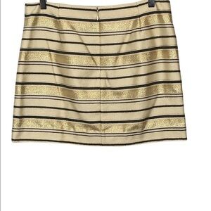 J. Crew Factory shiny and pretty special occasion mini skirt with stripes in gold, black, cream and grey. The gold stripe has metallic shine. Simple A line mini. Excellent pre-owned condition. Size 8.