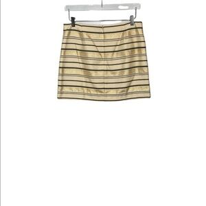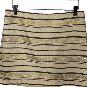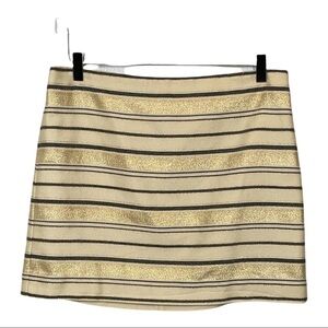 J. Crew Factory shiny and pretty special occasion mini skirt with stripes in gold, black, cream and grey. The gold stripe has metallic shine. Simple A line mini. Excellent pre-owned condition. Size 8.