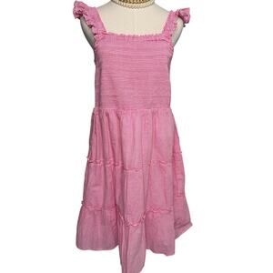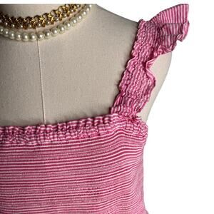 J. Crew Factory Striped Smocked Tiered Mini Dress ruffle pink size large L