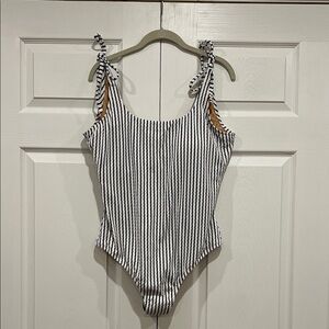 J. Crew Factory Striped Tie-shoulder One-piece Swimsuit Navy and White Size XXL