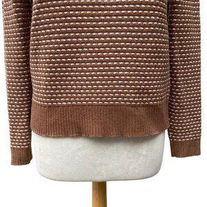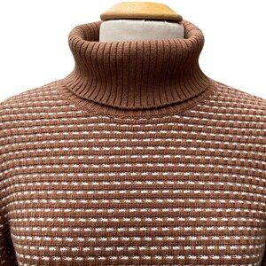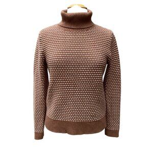 J Crew Factory Textured Striped Turtleneck Sweater Chestnut Brown Preppy
