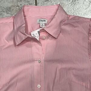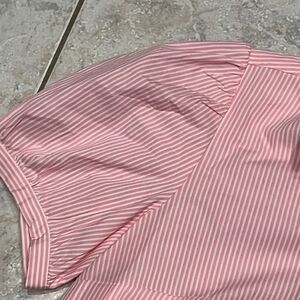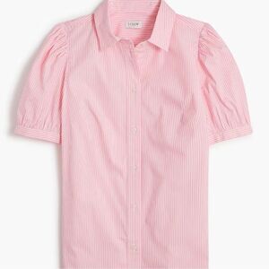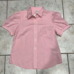 J Crew Factory Striped puff-sleeve button-up, pink and white size Large, NWT C29