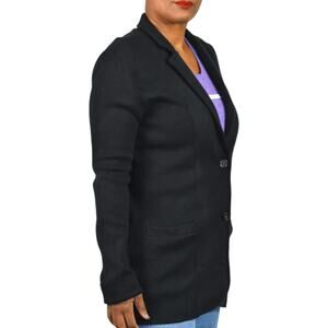 J Crew Factory Sweater Blazer Black Cardigan Knit Collared Cotton Pockets Medium
