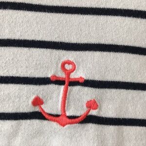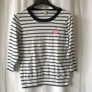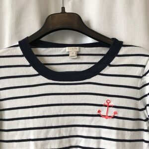 J. Crew Factory Sweater White Navy Stripe Embroidered Anchor Preppy size medium
