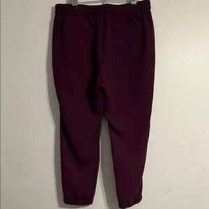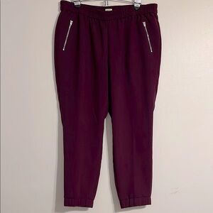 Stylish plum color pants with zipper pockets by J. Crew. Jogger leg cuffs. Comfortable and chic.